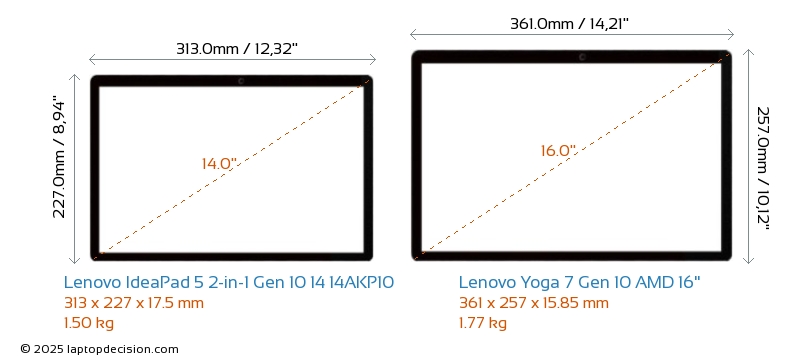 Thunderbolt Yoga 7 Gen 10 AMD 16" is equipped with Thunderbolt 4 port. IdeaPad 5 2-in-1 Gen 10 14 14AKP10 does not have Thunderbolt port.