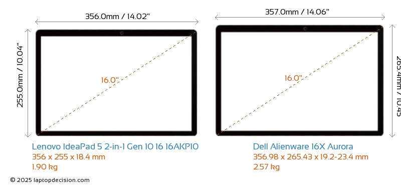 HDMIBoth IdeaPad 5 2-in-1 Gen 10 16 16AKP10 and Alienware 16X Aurora feature an HDMI port. IdeaPad 5 2-in-1 Gen 10 16 16AKP10 offers 1x HDMI 1.4, while Alienware 16X Aurora offers 1x HDMI 2.1.