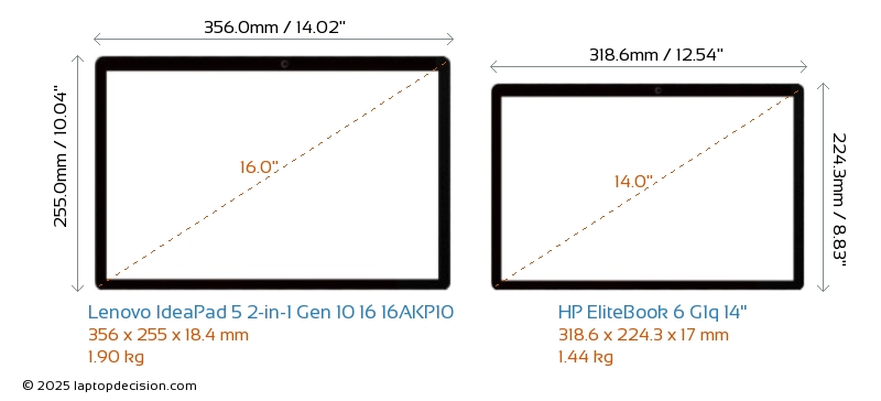 HDMIBoth IdeaPad 5 2-in-1 Gen 10 16 16AKP10 and EliteBook 6 G1q 14" feature an HDMI port. IdeaPad 5 2-in-1 Gen 10 16 16AKP10 offers 1x HDMI 1.4, while EliteBook 6 G1q 14" offers 1x HDMI 2.1.