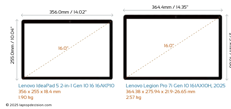 Thunderbolt Legion Pro 7i Gen 10 16IAX10H, 2025 is equipped with Thunderbolt 4 port. IdeaPad 5 2-in-1 Gen 10 16 16AKP10 does not have Thunderbolt port.