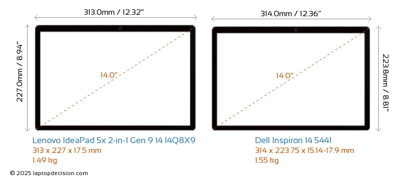 Audio JackBoth IdeaPad 5x 2-in-1 Gen 9 14 14Q8X9 and Inspiron 14 5441 are equipped with a 3.5mm Audio Jack, providing seamless connection to headphones and speakers.