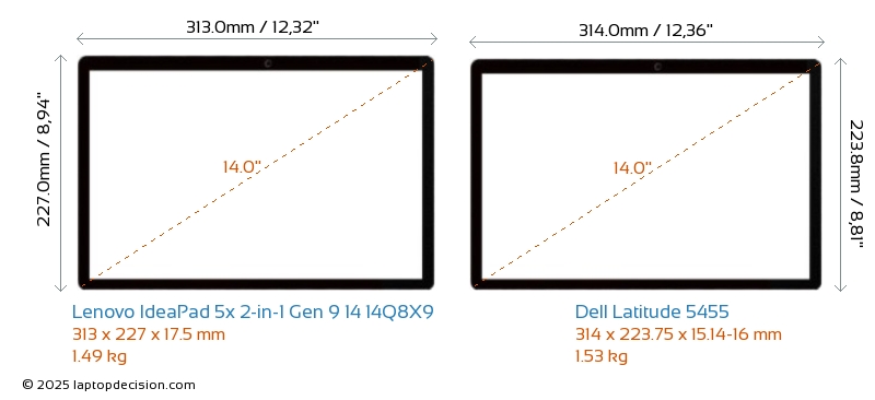 ThunderboltNeither IdeaPad 5x 2-in-1 Gen 9 14 14Q8X9 nor Latitude 5455 has Thunderbolt port.