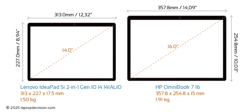 HDMIBoth IdeaPad 5i 2-in-1 Gen 10 14 14IAL10 and OmniBook 7 16 feature an HDMI port. IdeaPad 5i 2-in-1 Gen 10 14 14IAL10 offers 1x HDMI 1.4, while OmniBook 7 16 offers 1x HDMI 2.1.