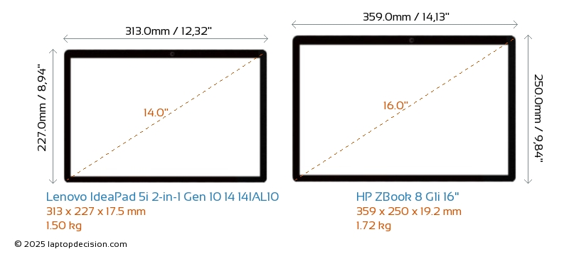 HDMIBoth IdeaPad 5i 2-in-1 Gen 10 14 14IAL10 and ZBook 8 G1i 16" feature an HDMI port. IdeaPad 5i 2-in-1 Gen 10 14 14IAL10 offers 1x HDMI 1.4, while ZBook 8 G1i 16" offers 1x HDMI 2.1.