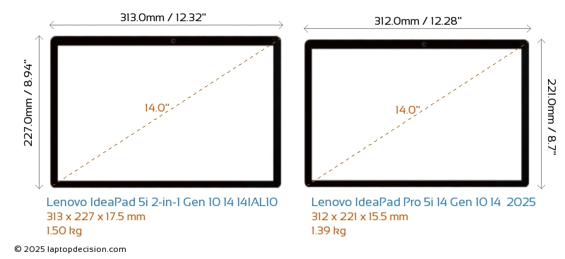 Thunderbolt IdeaPad Pro 5i 14 Gen 10 14 2025 is equipped with Thunderbolt 4 port. IdeaPad 5i 2-in-1 Gen 10 14 14IAL10 does not have Thunderbolt port.