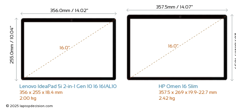 HDMIBoth IdeaPad 5i 2-in-1 Gen 10 16 16IAL10 and Omen 16 Slim feature an HDMI port. IdeaPad 5i 2-in-1 Gen 10 16 16IAL10 offers 1x HDMI 1.4, while Omen 16 Slim offers 1x HDMI 2.1.