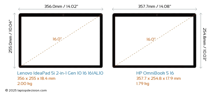 HDMIBoth IdeaPad 5i 2-in-1 Gen 10 16 16IAL10 and OmniBook 5 16 feature an HDMI port. IdeaPad 5i 2-in-1 Gen 10 16 16IAL10 offers 1x HDMI 1.4, while OmniBook 5 16 offers 1x HDMI 2.1.
