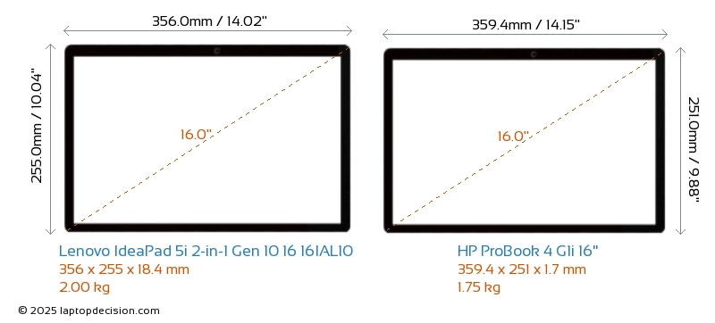 HDMIBoth IdeaPad 5i 2-in-1 Gen 10 16 16IAL10 and ProBook 4 G1i 16" feature an HDMI port. IdeaPad 5i 2-in-1 Gen 10 16 16IAL10 offers 1x HDMI 1.4, while ProBook 4 G1i 16" offers 1x HDMI 2.1.