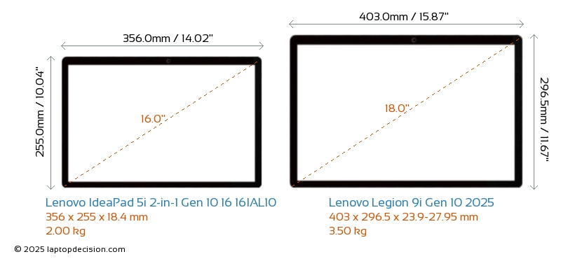 HDMIBoth IdeaPad 5i 2-in-1 Gen 10 16 16IAL10 and Legion 9i Gen 10 2025 feature an HDMI port. IdeaPad 5i 2-in-1 Gen 10 16 16IAL10 offers 1x HDMI 1.4, while Legion 9i Gen 10 2025 offers 1x HDMI 2.1.