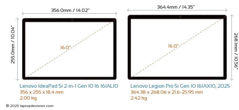 Thunderbolt Legion Pro 5i Gen 10 16IAX10, 2025 is equipped with Thunderbolt 4 port. IdeaPad 5i 2-in-1 Gen 10 16 16IAL10 does not have Thunderbolt port.