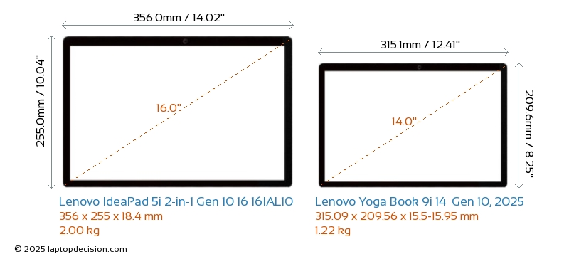 USB IdeaPad 5i 2-in-1 Gen 10 16 16IAL10 is equipped with 2x USB 3.2 USB-A ports. Yoga Book 9i 14 Gen 10, 2025 does not have USB-A ports.Both IdeaPad 5i 2-in-1 Gen 10 16 16IAL10 and Yoga Book 9i 14 Gen 10, 2025 have USB Type-C ports. IdeaPad 5i 2-in-1 Gen 10 16 16IAL10 has 2x USB 4.0 USB Type-C ports, while Yoga Book 9i 14 Gen 10, 2025 has 3x USB 4.0 USB Type-C ports.