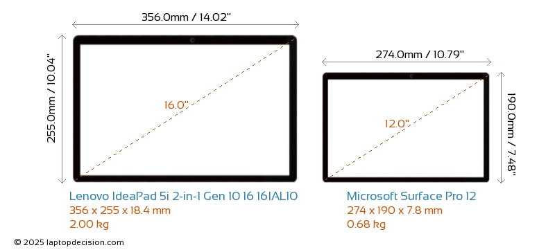 Audio Jack IdeaPad 5i 2-in-1 Gen 10 16 16IAL10 is equipped with a 3.5mm Audio Jack, allowing seamless connection to headphones and speakers. Surface Pro 12 does not have a 3.5mm Audio Jack.