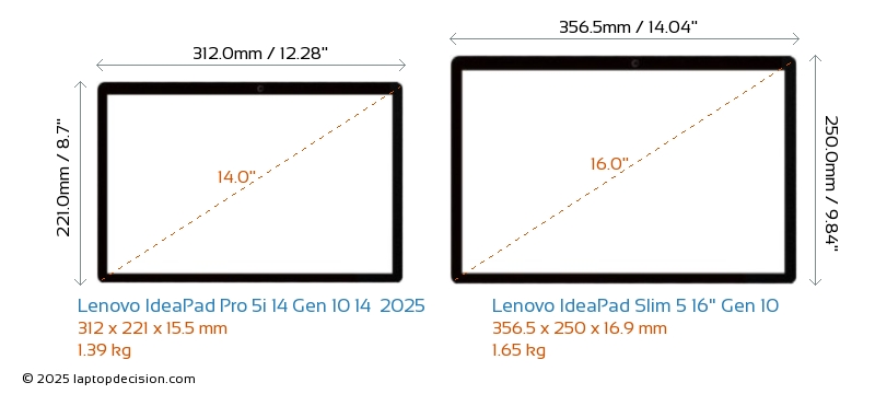 HDMIBoth IdeaPad Pro 5i 14 Gen 10 14 2025 and IdeaPad Slim 5 16" Gen 10 feature an HDMI port. IdeaPad Pro 5i 14 Gen 10 14 2025 offers 1x HDMI 2.1, while IdeaPad Slim 5 16" Gen 10 offers 1x HDMI 1.4.