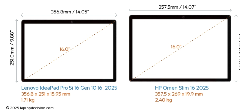 Audio JackBoth IdeaPad Pro 5i 16 Gen 10 16 2025 and Omen Slim 16 2025 are equipped with a 3.5mm Audio Jack, providing seamless connection to headphones and speakers.