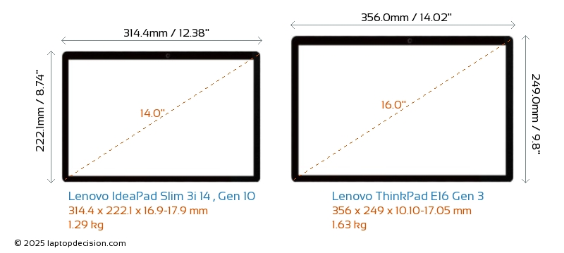 USBBoth IdeaPad Slim 3i 14 , Gen 10 and ThinkPad E16 Gen 3 feature 2x USB 3.2 USB-A ports.Both IdeaPad Slim 3i 14 , Gen 10 and ThinkPad E16 Gen 3 have USB Type-C ports. IdeaPad Slim 3i 14 , Gen 10 has 1x USB 3.2 USB Type-C ports, while ThinkPad E16 Gen 3 has 2x USB 4.0 USB Type-C ports.
