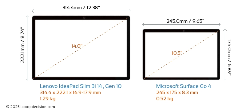 Audio JackBoth IdeaPad Slim 3i 14 , Gen 10 and Surface Go 4 are equipped with a 3.5mm Audio Jack, providing seamless connection to headphones and speakers.