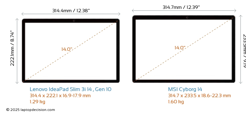 HDMIBoth IdeaPad Slim 3i 14 , Gen 10 and Cyborg 14 feature an HDMI port. IdeaPad Slim 3i 14 , Gen 10 offers 1x HDMI 1.4, while Cyborg 14 offers 1x HDMI 2.1.