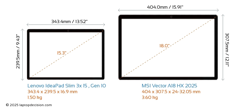 USBBoth IdeaPad Slim 3x 15 , Gen 10 and Vector A18 HX 2025 have USB-A ports. IdeaPad Slim 3x 15 , Gen 10 has 2x USB 3.2 USB-A ports, while Vector A18 HX 2025 has 3x USB 3.2 USB-A ports.Both IdeaPad Slim 3x 15 , Gen 10 and Vector A18 HX 2025 have USB Type-C ports. IdeaPad Slim 3x 15 , Gen 10 has 1x USB 3.2 USB Type-C ports, while Vector A18 HX 2025 has 2x USB 4.0 USB Type-C ports.