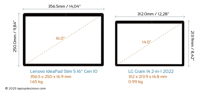 USBBoth IdeaPad Slim 5 16" Gen 10 and Gram 14 2-in-1 2022 feature 2x USB 3.2 USB-A ports.Both IdeaPad Slim 5 16" Gen 10 and Gram 14 2-in-1 2022 have USB Type-C ports. IdeaPad Slim 5 16" Gen 10 has 2x USB 3.2 USB Type-C ports, while Gram 14 2-in-1 2022 has 2x USB 4.0 USB Type-C ports.