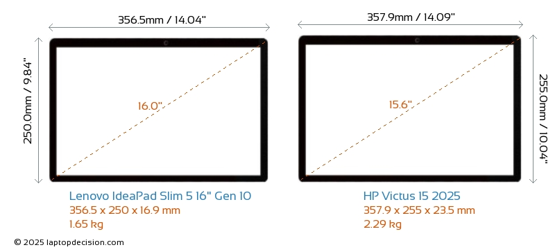 HDMIBoth IdeaPad Slim 5 16" Gen 10 and Victus 15 2025 feature an HDMI port. IdeaPad Slim 5 16" Gen 10 offers 1x HDMI 1.4, while Victus 15 2025 offers 1x HDMI 2.1.