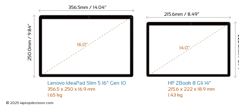 HDMIBoth IdeaPad Slim 5 16" Gen 10 and ZBook 8 G1i 14" feature an HDMI port. IdeaPad Slim 5 16" Gen 10 offers 1x HDMI 1.4, while ZBook 8 G1i 14" offers 1x HDMI 2.1.