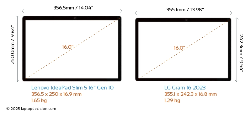 USBBoth IdeaPad Slim 5 16" Gen 10 and Gram 16 2023 feature 2x USB 3.2 USB-A ports.Both IdeaPad Slim 5 16" Gen 10 and Gram 16 2023 have USB Type-C ports. IdeaPad Slim 5 16" Gen 10 has 2x USB 3.2 USB Type-C ports, while Gram 16 2023 has 2x USB 4.0 USB Type-C ports.