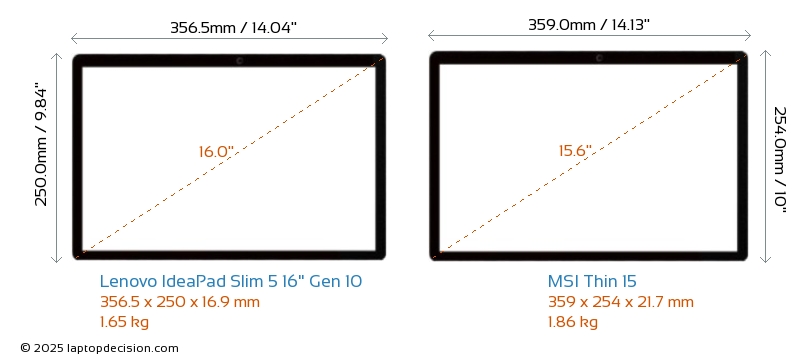 USBBoth IdeaPad Slim 5 16" Gen 10 and Thin 15 have USB-A ports. IdeaPad Slim 5 16" Gen 10 has 2x USB 3.2 USB-A ports, while Thin 15 has 3x USB 3.2 USB-A ports.Both IdeaPad Slim 5 16" Gen 10 and Thin 15 have USB Type-C ports. IdeaPad Slim 5 16" Gen 10 has 2x USB 3.2 USB Type-C ports, while Thin 15 has 1x USB 3.2 USB Type-C ports.