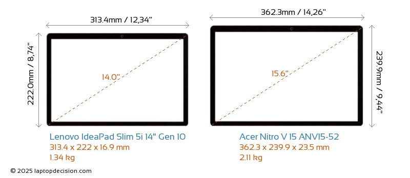USBBoth IdeaPad Slim 5i 14" Gen 10 and Nitro V 15 ANV15-52 have USB-A ports. IdeaPad Slim 5i 14" Gen 10 has 2x USB 3.2 USB-A ports, while Nitro V 15 ANV15-52 has 3x USB 3.2 USB-A ports.Both IdeaPad Slim 5i 14" Gen 10 and Nitro V 15 ANV15-52 have USB Type-C ports. IdeaPad Slim 5i 14" Gen 10 has 2x USB 3.2 USB Type-C ports, while Nitro V 15 ANV15-52 has 1x USB 4.0 USB Type-C ports.