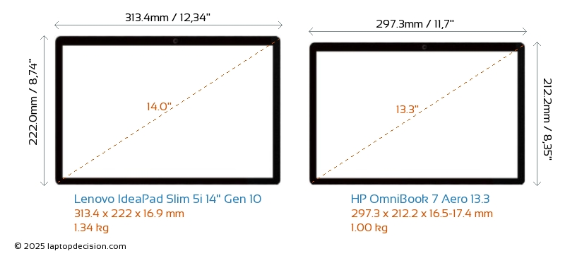 HDMIBoth IdeaPad Slim 5i 14" Gen 10 and OmniBook 7 Aero 13.3 feature an HDMI port. IdeaPad Slim 5i 14" Gen 10 offers 1x HDMI 1.4, while OmniBook 7 Aero 13.3 offers 1x HDMI 2.1.