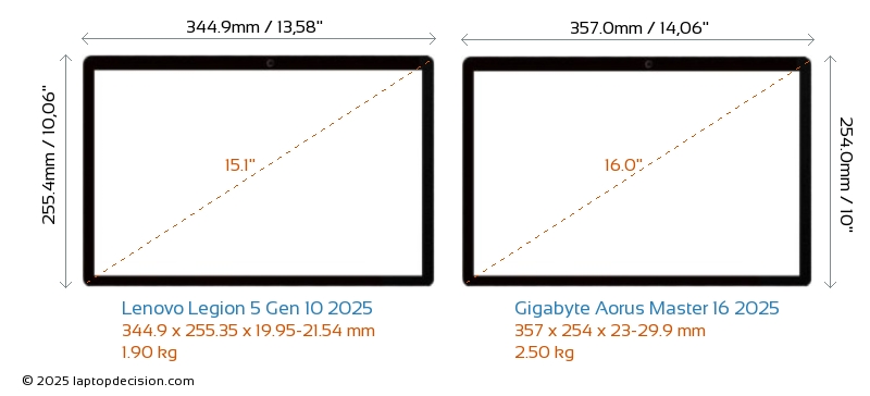 SD Card Reader Aorus Master 16 2025 is equipped with an SD Card Reader for easy access to memory cards. Legion 5 Gen 10 2025 does not have an SD Card Reader.