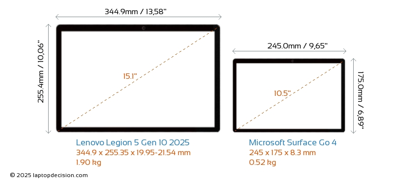 ThunderboltNeither Legion 5 Gen 10 2025 nor Surface Go 4 has Thunderbolt port.