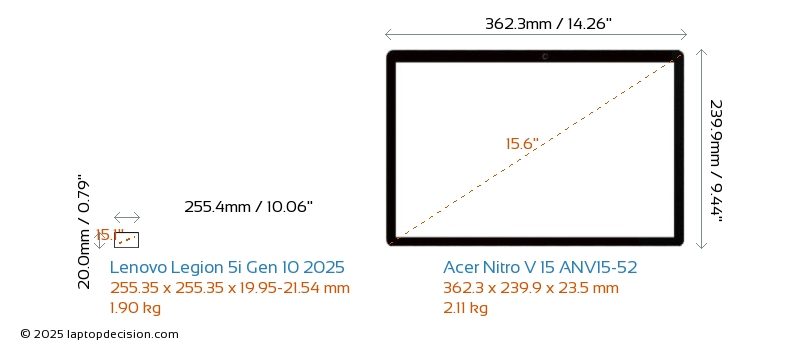 USBBoth Legion 5i Gen 10 2025 and Nitro V 15 ANV15-52 feature 3x USB 3.2 USB-A ports.Both Legion 5i Gen 10 2025 and Nitro V 15 ANV15-52 have USB Type-C ports. Legion 5i Gen 10 2025 has 2x USB 3.2 USB Type-C ports, while Nitro V 15 ANV15-52 has 1x USB 4.0 USB Type-C ports.