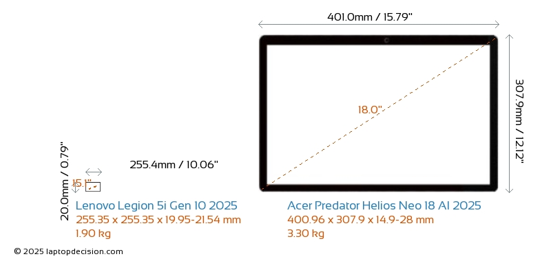 SD Card Reader Predator Helios Neo 18 AI 2025 is equipped with an SD Card Reader for easy access to memory cards. Legion 5i Gen 10 2025 does not have an SD Card Reader.