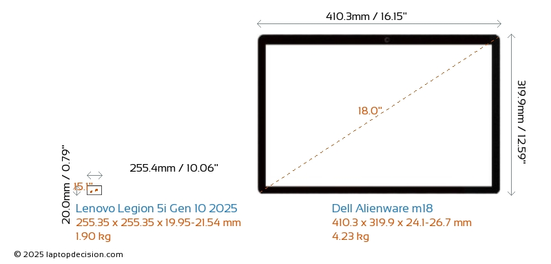 SD Card Reader Alienware m18 is equipped with an SD Card Reader for easy access to memory cards. Legion 5i Gen 10 2025 does not have an SD Card Reader.