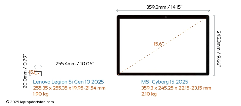 ThunderboltNeither Legion 5i Gen 10 2025 nor Cyborg 15 2025 has Thunderbolt port.