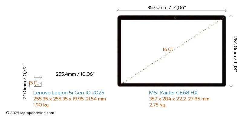 SD Card Reader Raider GE68 HX is equipped with an SD Card Reader for easy access to memory cards. Legion 5i Gen 10 2025 does not have an SD Card Reader.