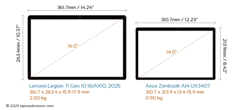 HDMIBoth Legion 7i Gen 10 16IAX10, 2025 and Zenbook A14 UX3407 feature an HDMI port (1x HDMI 2.1) for connecting to external monitors.