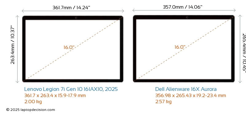 HDMIBoth Legion 7i Gen 10 16IAX10, 2025 and Alienware 16X Aurora feature an HDMI port (1x HDMI 2.1) for connecting to external monitors.