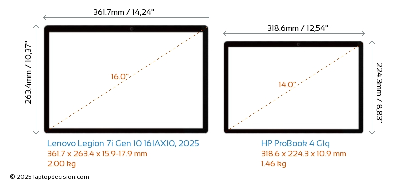 USBBoth Legion 7i Gen 10 16IAX10, 2025 and ProBook 4 G1q have USB-A ports. Legion 7i Gen 10 16IAX10, 2025 has 3x USB 3.2 USB-A ports, while ProBook 4 G1q has 2x USB 3.2 USB-A ports.Both Legion 7i Gen 10 16IAX10, 2025 and ProBook 4 G1q have USB Type-C ports. Legion 7i Gen 10 16IAX10, 2025 has 2x USB 4.0 USB Type-C ports, while ProBook 4 G1q has 2x USB 3.2 USB Type-C ports.