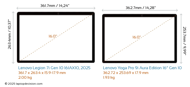 ThunderboltBoth Legion 7i Gen 10 16IAX10, 2025 and Yoga Pro 9i Aura Edition 16" Gen 10 are equipped with Thunderbolt 4 ports.