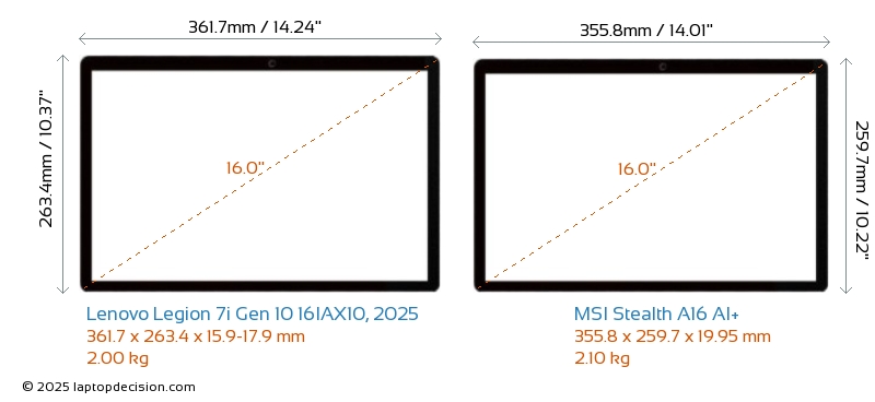 ThunderboltBoth Legion 7i Gen 10 16IAX10, 2025 and Stealth A16 AI+ are equipped with Thunderbolt 4 ports.