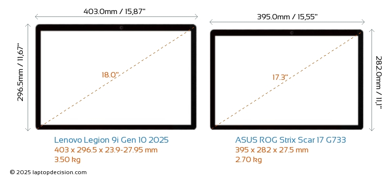 SD Card Reader Legion 9i Gen 10 2025 is equipped with an SD Card Reader for easy access to memory cards. ROG Strix Scar 17 G733 does not have an SD Card Reader.