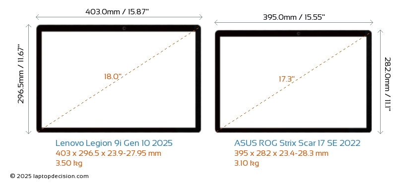 USBBoth Legion 9i Gen 10 2025 and ROG Strix Scar 17 SE 2022 have USB-A ports. Legion 9i Gen 10 2025 has 3x USB 3.2 USB-A ports, while ROG Strix Scar 17 SE 2022 has 2x USB 3.2 USB-A ports.Both Legion 9i Gen 10 2025 and ROG Strix Scar 17 SE 2022 have USB Type-C ports. Legion 9i Gen 10 2025 has 3x USB 4.0 USB Type-C ports, while ROG Strix Scar 17 SE 2022 has 2x USB 3.2 USB Type-C ports.