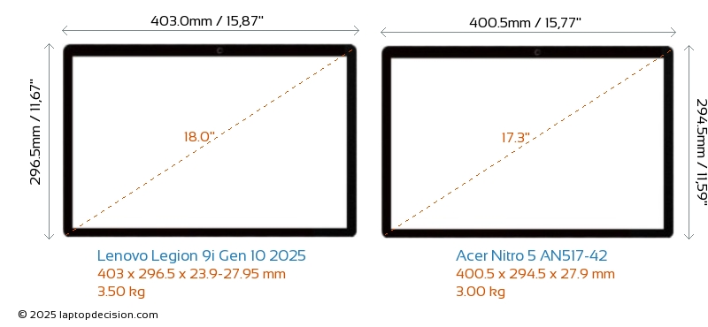 SD Card Reader Legion 9i Gen 10 2025 is equipped with an SD Card Reader for easy access to memory cards. Nitro 5 AN517-42 does not have an SD Card Reader.