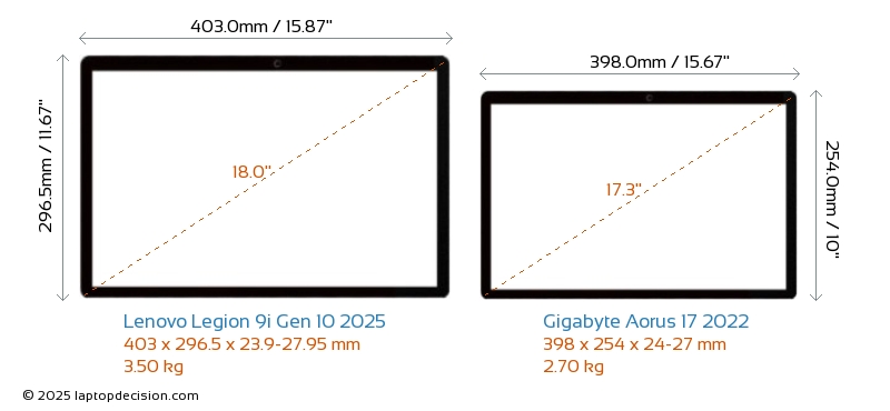 Audio JackBoth Legion 9i Gen 10 2025 and Aorus 17 2022 are equipped with a 3.5mm Audio Jack, providing seamless connection to headphones and speakers.