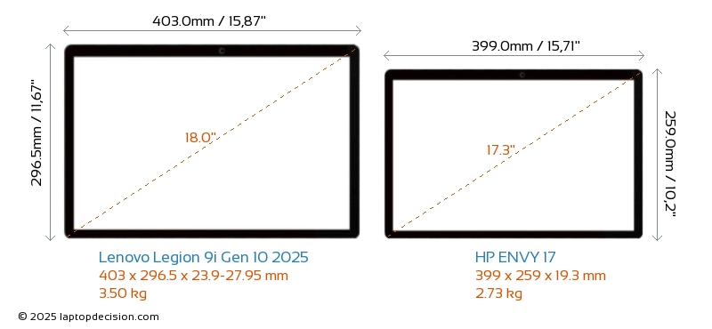 HDMIBoth Legion 9i Gen 10 2025 and ENVY 17 feature an HDMI port. Legion 9i Gen 10 2025 offers 1x HDMI 2.1, while ENVY 17 offers 1x HDMI 2.0.