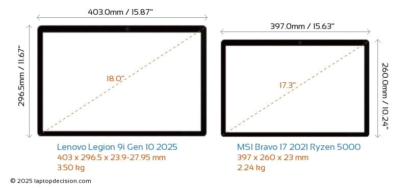 HDMIBoth Legion 9i Gen 10 2025 and Bravo 17 2021 Ryzen 5000 feature an HDMI port. Legion 9i Gen 10 2025 offers 1x HDMI 2.1, while Bravo 17 2021 Ryzen 5000 offers 1x HDMI 2.0.