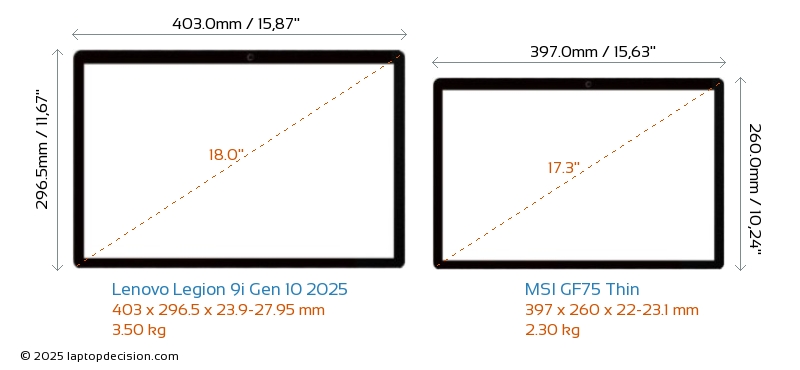 Audio JackBoth Legion 9i Gen 10 2025 and GF75 Thin are equipped with a 3.5mm Audio Jack, providing seamless connection to headphones and speakers.