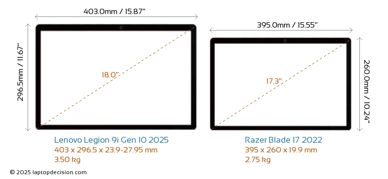 Audio JackBoth Legion 9i Gen 10 2025 and Blade 17 2022 are equipped with a 3.5mm Audio Jack, providing seamless connection to headphones and speakers.