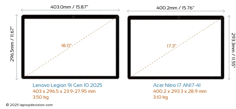 HDMIBoth Legion 9i Gen 10 2025 and Nitro 17 AN17-41 feature an HDMI port (1x HDMI 2.1) for connecting to external monitors.